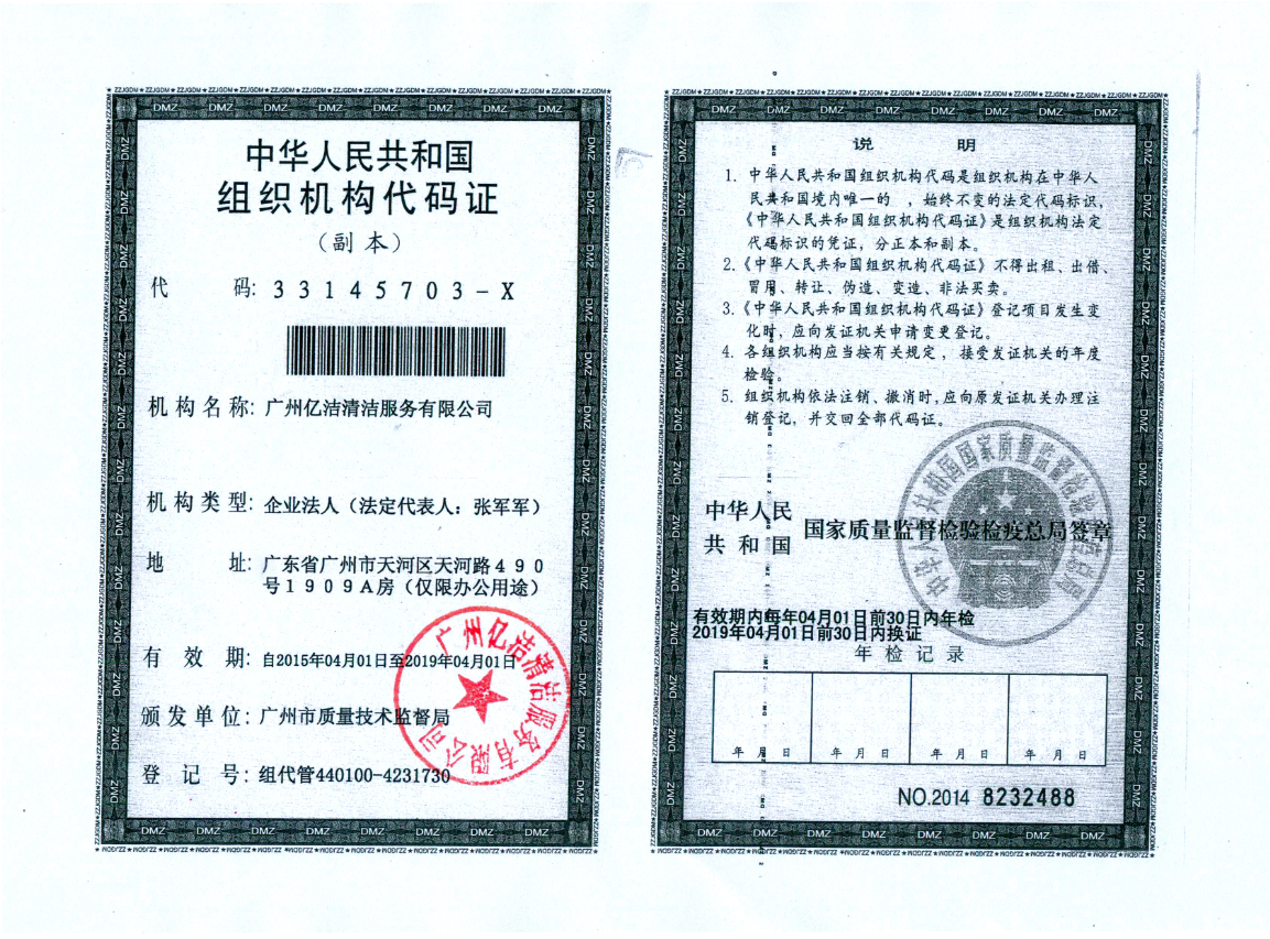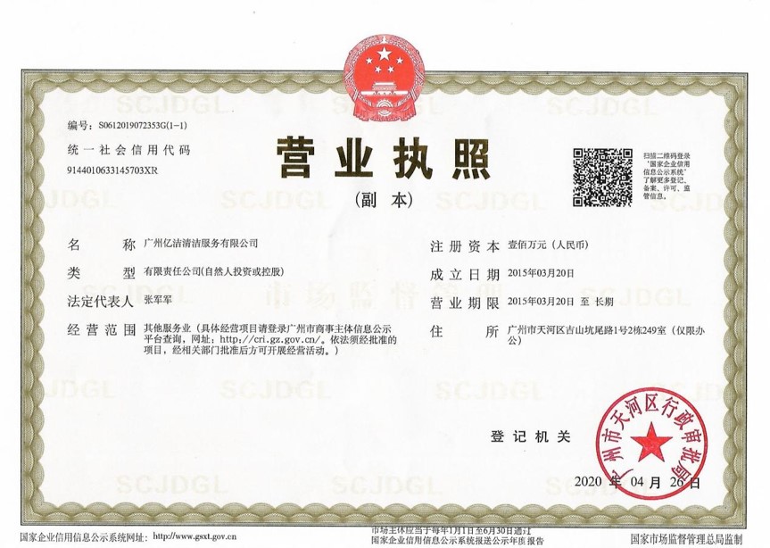 廣州億潔清潔服務(wù)有限公司是經(jīng)廣州市工商行政管理局批準(zhǔn)成立的(注冊資本:100萬元人民幣)。具有獨(dú)立法人資質(zhì)。公司成立2015年,公司具備完善的管理體系和高素質(zhì)管理隊(duì)伍,擁有特種技術(shù)人員33名,保潔服務(wù)人員上萬名,覆蓋廣州市,能及時調(diào)配并快速投入高效運(yùn)行。我們的每個員工都經(jīng)過公司的嚴(yán)格篩選,嚴(yán)格培訓(xùn),定期培訓(xùn)后持證上崗以保證服務(wù)品質(zhì),保障客戶的權(quán)利,利益,形象等不受損失。 廣州億潔清潔公司是一家設(shè)備齊全,技術(shù)強(qiáng)大的綜合型清潔服務(wù)公司,為客戶提供完善服務(wù)尊定了堅(jiān)定的基礎(chǔ)。 司于2010年全面推行了ISO9001質(zhì)量管理體系認(rèn)證和ISO14001國際環(huán)保體系認(rèn)證。先后獲得廣州高層建筑外墻清洗維修作業(yè)【安全資質(zhì)證書】、【廣州環(huán)衛(wèi)企業(yè)等級證書C級資質(zhì)】、廣州疾控中心頒發(fā)的【四害消殺服務(wù)資質(zhì)證】、【空氣治理A級資質(zhì)】、中國石材協(xié)會頒發(fā)的【石材資質(zhì)B級資質(zhì)】等。 廣州億潔清潔服務(wù)有限公司致力于打造專業(yè)、實(shí)惠、靠譜的保潔服務(wù)公司,把專業(yè)的事情交給專業(yè)的我們,您放心! 億潔清潔服務(wù)項(xiàng)目: 廣州保潔服務(wù):新建樓宇、別墅、酒店、醫(yī)院、辦公樓、賓館、企事業(yè)單位廠房竣工后開荒及裝修后精細(xì)保潔.工程保潔服務(wù)。 廣州物業(yè)托管:為廣州市各大企事業(yè)單位、賓館、政府機(jī)關(guān)、小區(qū)物業(yè)、酒店及廠房提供專業(yè)化保潔、園林、設(shè)施維護(hù)等管理服務(wù)。 廣州高空作業(yè):高空玻璃幕...[詳情]